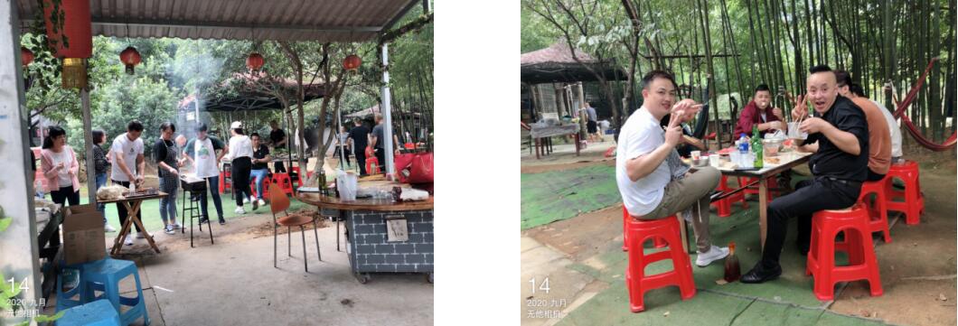 到达龙池山烧烤基地,团建活动拉开序幕。全体员工参与烧烤制作并相互分享美食成果。